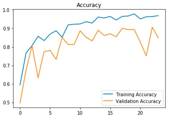 Figure 9 depicts the training loss and validation loss after 20 epochs, whereas Figure 10 depicts the training and validation accuracy after 20 epochs.