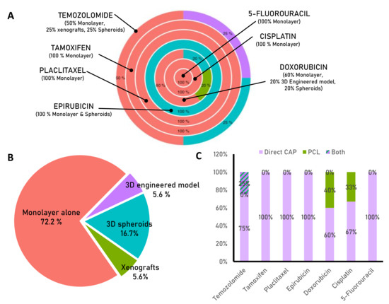 Recently, Mateu-Sanz et al. showed that the use of PCL improved the cytotoxic effect of DOX in a 3D-engineered model of prostate cancer. Prostate cancer often metastasizes in bone; therefore, after seeding them into a bone-like scaffold, prostate cancer cells were treated with PCL. The administration of indirect plasma was able to enhance the cytotoxic potential of DOX as the combination of PCL and DOX resulted in the downregulation of redox defenses (CAT1, SOD2, and GPX1), induced apoptosis, and downregulated the expression of well-studied drug efflux ABC pumps (ABCC1, ABCB1, and ABCG2) associated with DOX resistance. The combination of PCL and DOX resulted in an enhanced uptake of DOX coupled with an overload of intracellular ROS in prostate cancer cells [39]. Moreover, the authors observed that PCL improves the migratory and clonogenic potential of prostate cancer cells in a monolayer. Notably, this study highlighted the fact that PCL and DOX did not affect the viability of healthy stem cells or human osteoblasts [39].