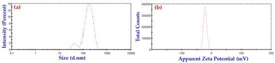 (a) Particle size of the silver nanoparticle-loaded liposome, and (b) zeta potential of the silver nanoparticle loaded liposome.