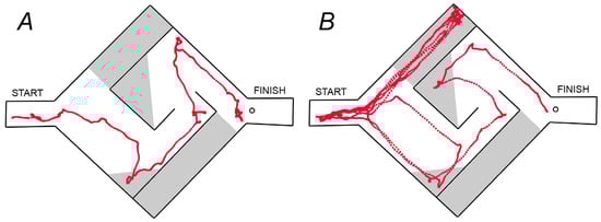 - Pritchett, K.; Mulder, G.B. Hebb-Williams Mazes. Contemp. Top. Lab. Anim. Sci. 2004, 43, 44–45. [Google Scholar]