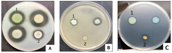 While 93.75% of the tested commensal P. aeruginosa produced protease and gelatinase, their average enzymatic activity was 0.28 ± 0.09 (mm) and 0.29 ± 0.06 (mm), respectively. Only 50% of tested isolates were positive for lipase, for which the average halo size was 0.18 ± 0.04 (mm) (Figure 2, Table 3). Our data are comparable with previous studies on clinical isolates from chronic leg ulcers where 91.67% produced protease, 66.67% produced gelatinase, and 83.33% produced lipase [56], indicating the common presence of these extracellular enzymes in all P. aeruginosa isolates.