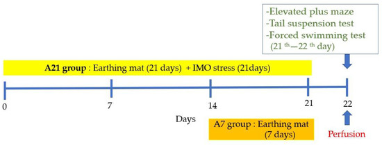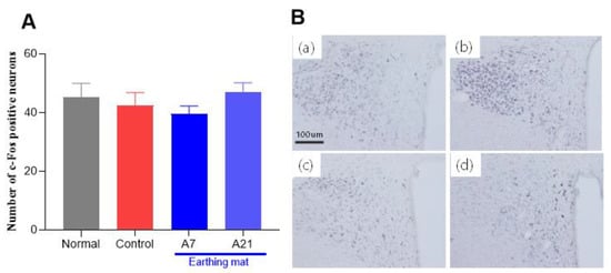Chicago/Turabian StylePark, Hyun-Jung, Woojin Jeong, Hyo Jeong Yu, Minsook Ye, Yunki Hong, Minji Kim, Ji Youn Kim, and Insop Shim. 2023. "The Effect of Earthing Mat on Stress-Induced Anxiety-like Behavior and Neuroendocrine Changes in the Rat" Biomedicines 11, no. 1: 57. https://doi.org/10.3390/biomedicines11010057