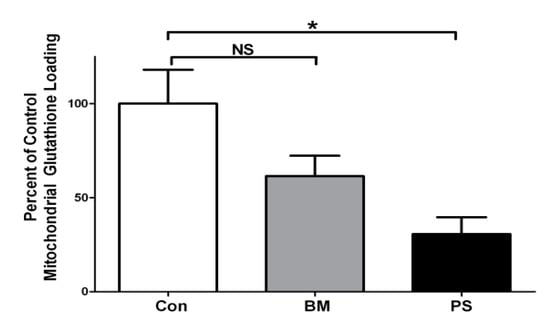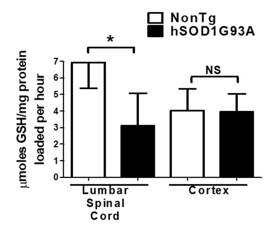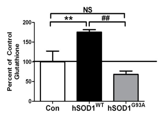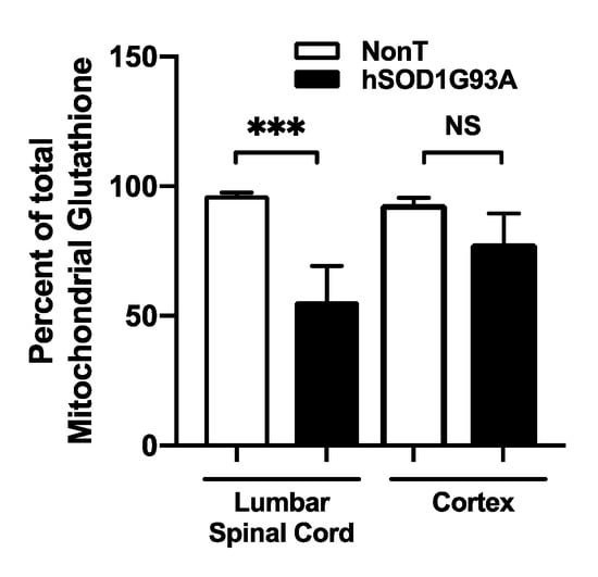 3.2. Mitochondrial GSH in Lumbar Spinal Cord Is Depleted in End-Stage G93A Mutant hSOD1 Mice