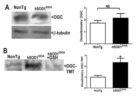 3.5. OGC Is S-Nitrosylated in Lumbar Spinal Cord from End-Stage G93A Mutant hSOD1 Mice