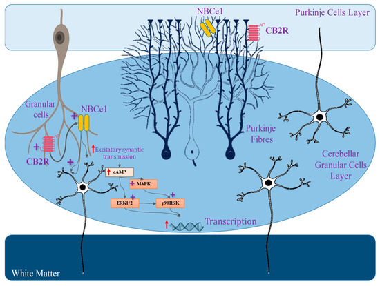 As a consequence, the cell membrane becomes hyperpolarized, resulting in neural blocking [157]. Studies also evidence that CB2 receptor expression activates the Na+/Bicarbonate co-transporter in the hippocampus, specifically in the CA3/CA2 neuronal cells, resulting in a sustained synaptic hyperpolarization. Interestingly, CB2 receptors activation is autonomous, changing the input and output behavior of CA3 pyramidal neurons and modulating gamma oscillations in vivo [156]. The increased expression of CB2 receptors in midbrain dopamine neuronal cells suggests that they may have an impact on a variety of key behaviors connected to dopamine activity [158]. CB2 receptors have been linked to the regulation of hunger, managing weight [159,160,161,162], depression [163], stress [164], and schizophrenia-like behaviors [165]. Several studies have demonstrated how CB2 receptors in the brain have an important role in reducing drug dependence—mainly alcohol, nicotine, and psychotropic substances [166,167,168]. These results imply that CB2 receptors have a considerable influence on the mesocorticolimbic system and perform essential functions in a wide range of brain processes, including psychiatric, cognitive abilities, and neurological tasks.