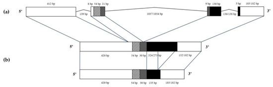 We applied the methodology described by Moran et al. [19], according to which the gapdh gene serves as a control determining whether the cDNA is contaminated with traces of gDNA; the primers were directed to gapdh exon–intron boundaries and the intronic region (Figure S3). The gapdh intron was absent in the control samples, confirming the purity of cDNA preparations. The third intron was found in both 116 and 146 tentacle cDNA samples (Figure S3b).