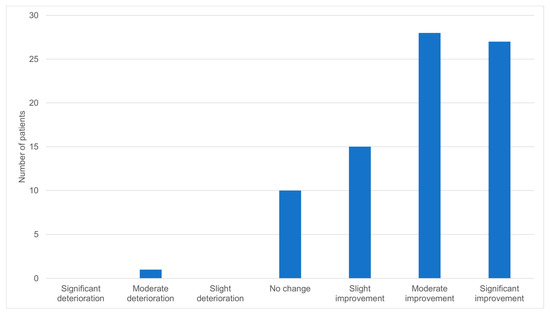 - Perception of the general effect of cannabis—global assessment using the Likert scale with seven options: significant improvement, moderate improvement, slight improvement, no change, slight deterioration, moderate deterioration, or significant deterioration.