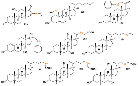 Natural and synthetic steroids are complex lipophilic molecules that play various specialized and regulatory roles in multicellular organisms [1,2,3]. Synthetic steroids and related lipophilic compounds can contain diverse heteroatoms and functional groups, serving as tissue-specific regulators of gene transcription within specific domains. Consequently, they exert a broad range of physiological effects [1,2,3,4,5,6]. These steroids possess unique structural features where one or more heteroatoms, such as oxygen (O), nitrogen (N), boron (B), sulfur (S), aluminum (Al), arsenic (As), astatine (At), germanium (Ge), silicon (Si), selenium (Se), tin (Sn), tellurium (Te), and halogens (F, Cl, Br, and I), are incorporated into the steroid framework. This incorporation of heteroatoms imparts distinct chemical and biological properties to these compounds, enabling a wide range of potential therapeutic applications. Heteroatom steroids refer to steroid molecules that contain one or more heteroatoms within their structure. These steroids exhibit a wide range of biological activities, including the following: antineoplastic, anti-inflammatory, antifungal, antibacterial, antimicrobial, antiviral, immunomodulatory, and other properties. It is important to note that the specific biological activities and properties of heteroatom steroids can vary depending on the structure of the steroid, the presence and position of heteroatoms, and other factors [5,6,7,8,9]. The exploration of heteroatom steroids has led to the development of innovative synthetic strategies and the discovery of new compounds with enhanced therapeutic profiles. Their ability to target specific biological pathways and interact with molecular targets opens up new possibilities for drug design and delivery systems. Furthermore, the investigation of heteroatom steroids has provided valuable insights into the relationship between chemical structure and biological activity. This knowledge contributes to the understanding of drug-receptor interactions and the optimization of drug efficacy and safety.