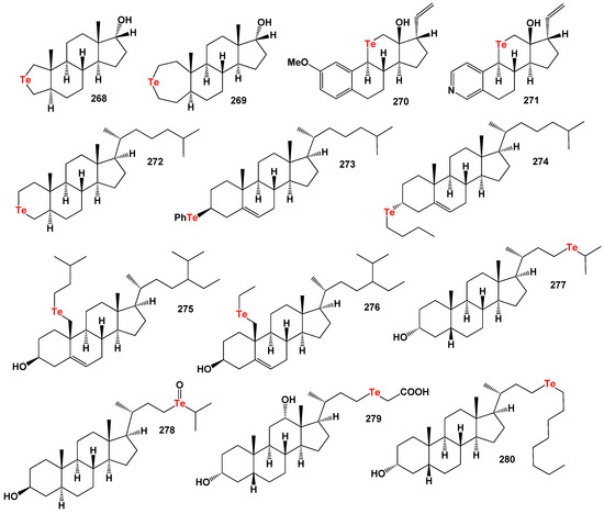 - Ibrahim-Ouali, M. First total synthesis of 11-tellura steroids. Tetrahedron Lett. 2010, 51, 3610–3612. [Google Scholar] [CrossRef]