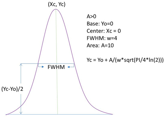 Full width at half maximum (FWHM) Gaussian fit applied to calculate %Area of each IR band detected after the pretreatment of the spectral data. Adapted from OriginPro 2023 manual.