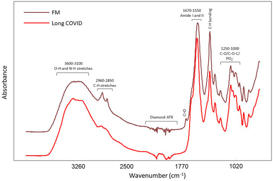 Representative IR spectrum of extracted LMF from the blood of FM and LC patients.