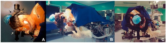 - Singh, G. Positioning in Neurosurgery. In Essentials of Neuroanesthesia; Academic Press: Cambridge, MA, USA, 2017; pp. 183–205. [Google Scholar]