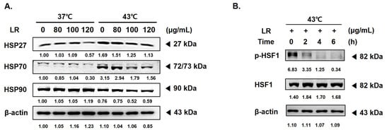 3.5. Cotreatment with LR and 43 °C Hyperthermia Suppresses HT-Induced Heat Shock Responses