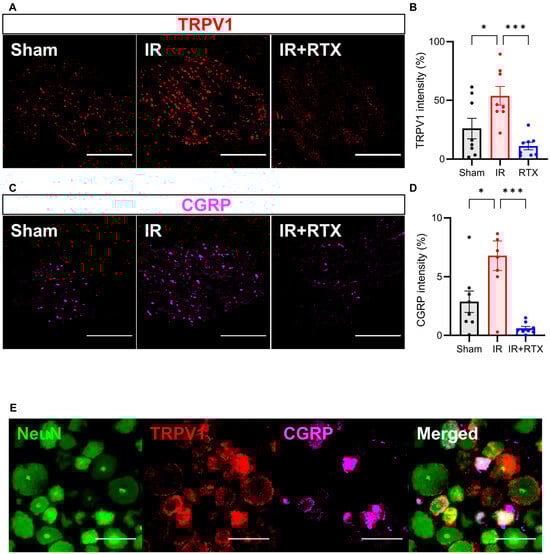 - Price, T.J.; Flores, C.M. Critical evaluation of the colocalization between calcitonin gene-related peptide, substance P, transient receptor potential vanilloid subfamily type 1 immunoreactivities, and isolectin B4 binding in primary afferent neurons of the rat and mouse. J. Pain 2007, 8, 263–272. [Google Scholar] [CrossRef]