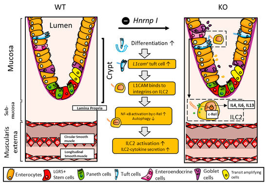 Xu, G.; Pan, Y.-X.; Mei, W.; Chen, H. Single-Cell RNA Sequencing (scRNA-seq) Identifies L1CAM as a Key Mediator between Epithelial Tuft Cell and Innate Lymphoid Cell in the Colon of Hnrnp I Knockout Mice. Biomedicines 2023, 11, 2734. https://doi.org/10.3390/biomedicines11102734