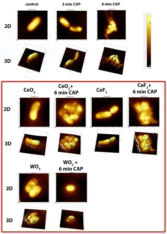 2.7. Atomic Force Microscopy (AFM) Study of Bacteria after CAP Irradiation