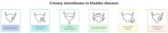 The aim of this review is to summarize the current knowledge on the urinary microbiome in bladder diseases and to identify potential directions for further research (Figure 1).