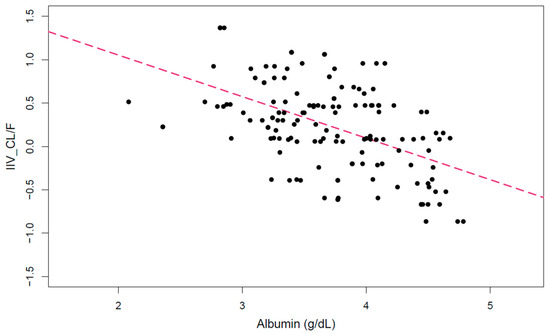 | ALB_CL/F | - | −2.33 (2.8%) | −2.46 : −2.21 | −2.36 (43.8%) | −4.39 : −0.335 |