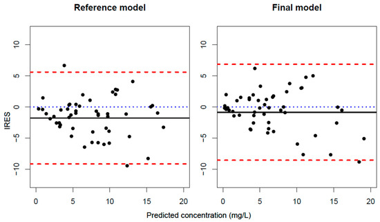 - Marquez-Megias, S.; Ramon-Lopez, A.; Más-Serrano, P.; Diaz-Gonzalez, M.; Candela-Boix, M.R.; Nalda-Molina, R. Evaluation of the Predictive Performance of Population Pharmacokinetic Models of Adalimumab in Patients with Inflammatory Bowel Disease. Pharmaceutics 2021, 13, 1244. [Google Scholar] [CrossRef] [PubMed]