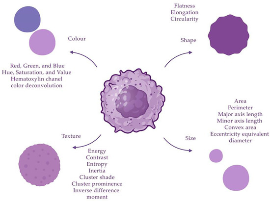 Descriptors of cell nuclei can be divided into four groups: size, shape, texture and color.