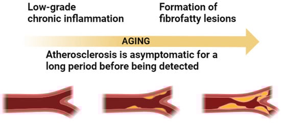 Atherosclerosis is a disease caused by a low-grade, chronic inflammation of the arterial wall. It is characterized by the formation of fibrofatty lesions that begin early in life and progress gradually and is therefore usually asymptomatic for a long period before being detected (Figure 1).