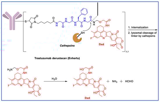 Structure and linker cleavage mechanism of trastuzumab deruxtecan (Enhertu).