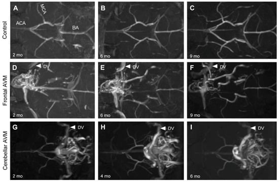 - Milton, I.; Ouyang, D.; Allen, C.J.; Yanasak, N.E.; Gossage, J.R.; Alleyne, C.H., Jr.; Seki, T. Age-dependent lethality in novel transgenic mouse models of central nervous system arteriovenous malformations. Stroke 2012, 43, 1432–1435. [Google Scholar] [CrossRef]