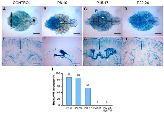 APA StyleHan, C., Nguyen, C. L., Scherschinski, L., Schriber, T. D., Arthur, H. M., Lawton, M. T., & Oh, S. P. (2023). VEGFR2 Expression Correlates with Postnatal Development of Brain Arteriovenous Malformations in a Mouse Model of Type I Hereditary Hemorrhagic Telangiectasia. Biomedicines, 11(12), 3153. https://doi.org/10.3390/biomedicines11123153