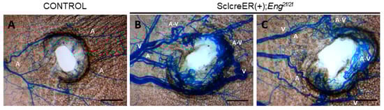 - Allinson, K.R.; Carvalho, R.L.; van den Brink, S.; Mummery, C.L.; Arthur, H.M. Generation of a floxed allele of the mouse Endoglin gene. Genesis 2007, 45, 391–395. [Google Scholar] [CrossRef]