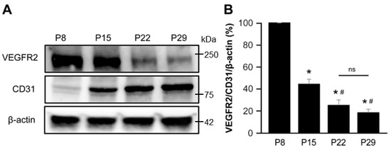 3.4. VEGFR2 Expression Predominated in the Early Postnatal Period