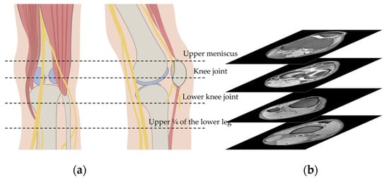 Schematic illustration of the knee (a) and upper and lower margin of input image in magnetic resonance images (b).