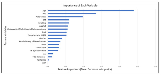- Yu, A.; Woo, S.M.; Joo, J.; Yang, H.-R.; Lee, W.J.; Park, S.-J.; Nam, B.-H. Development and validation of a prediction model to estimate individual risk of pancreatic cancer. PLoS ONE 2016, 11, e0146473. [Google Scholar] [CrossRef] [PubMed]