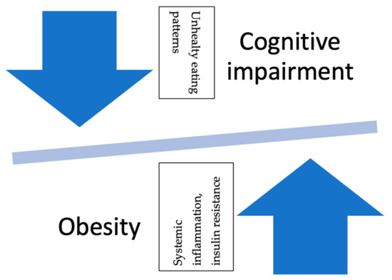 Therefore, this narrative review aims to gather relevant data published regarding the correlations between cognitive impairment in individuals and the association of the obese or overweight status and offer insight into the pathophysiological mechanisms involved and potential indications for the inhibition or reversal of such processes.