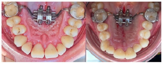 The application of the palatal expander is an invasive maneuver and, as such, may produce secondary reactions at a local level of traumatic origin. Thus, local and regional hyperplasia of the oral mucosa is a frequently encountered effect in palatal expander cases [10]. This depends on the patient’s reactivity to mechanical damage and the distance of application of the expander to the mucosa, being favored by the presence of some local factors such as pre-existing carious lesions or tartar deposits [11]. Also, another cause of mucosal lesions in the case of orthodontic expanders is their overfrequent activation, a fact that does not allow the bone structures to adapt. In order to carry out the orthodontic treatment, the expander cannot be removed from the oral cavity, and as a consequence, treating mucosal hyperplasia becomes problematic.