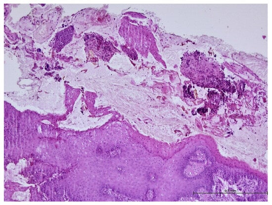 During the histopathological examination (Figure 9, Figure 10, Figure 11 and Figure 12), all cases (n. 25) presented the following characteristics: