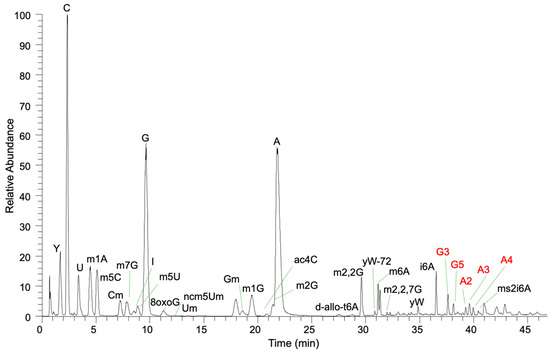 - Gaston, K.W.; Limbach, P.A. The identification and characterization of non-coding and coding RNAs and their modified nucleosides by mass spectrometry. RNA Biol. 2014, 11, 1568–1585. [Google Scholar] [CrossRef]