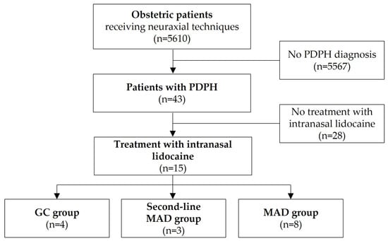 Cases were screened for the occurrence of PDPH following neuraxial analgesia and were included in the final analysis when intranasal lidocaine administration was used to treat this complication. The diagnosis of PDPH was retrospectively confirmed based on medical records and according to current consensus guidelines [,]. Patients without PDPH diagnoses and those without intranasal lidocaine treatment were excluded from the final analysis.