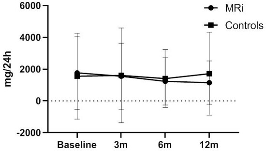 Inclusion criteria comprised the following: age > 18 years, previous treatment with ACEi or ARB at maximum tolerated dose for at least 6 months prior to screening, proteinuria greater than 150 mg in a 24 h urine collection, serum potassium less than 5 mg/dL at screening and no evidence of active cancer. We excluded patients with hepatic dysfunction, history of allergy or non-tolerability to ACEi or ARBs, acute kidney injury in the past three months and those on active immunosuppressive treatment with corticosteroids alone or in combination with calcineurin inhibitors, anti-metabolites or monoclonal antibodies. Antihypertensive drugs apart from ACEi or ARBs were prescribed as needed to achieve a target systolic blood pressure (SBP) of less than 120 mmHg. Dosage of ACEIs and ARBs remained stable after inclusion in the study. No patient received treatment with an SGLT-2 inhibitor prior to or during the study period.