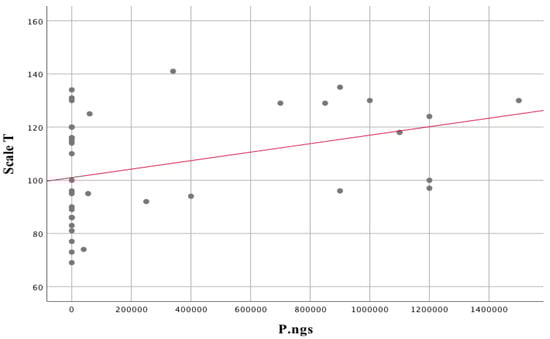 Relationship between Prevotella nigrescens (P.ngs) and the subjects’ Total score on the Positive and Negative Syndrome Scale (PANSS-T).