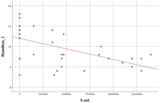 Relationship between Streptococcus salivarius (S.sal) and the subjects’ Hamilton scale score.
