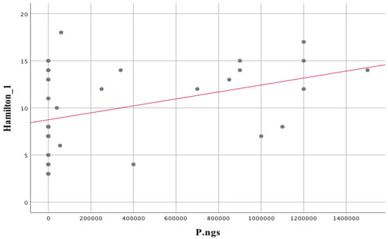 Relationship between Prevotella nigrescens (P.ngs) and the subjects’ score on the Hamilton scale.