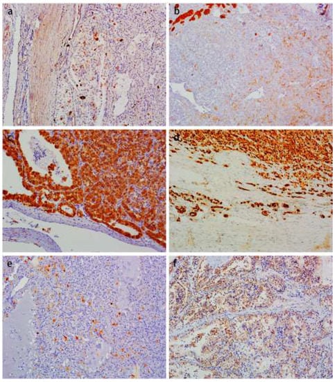 - Walter, B.; Gil, S.; Naizhen, X.; Kruhlak, M.J.; Linehan, W.M.; Srinivasan, R.; Merino, M.J. Determination of the Expression of PD-L1 in the Morphologic Spectrum of Renal Cell Carcinoma. J. Cancer 2020, 11, 3596–3603. [Google Scholar] [CrossRef]