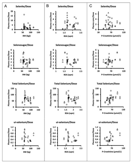 3.3. Systemic Exposure of Selenite in Relation to Patient-Specific Variables