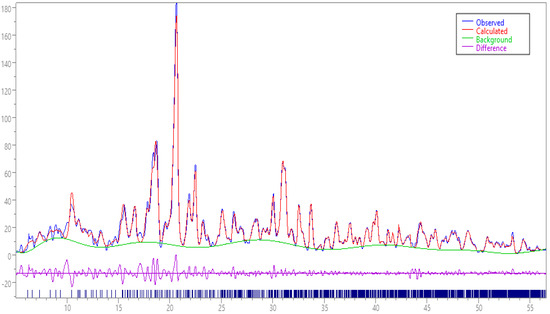 By profile fitting and indexing the PXRD pattern, the crystal structure is solved using direct methods with simulated annealing implemented in software EXPO2014. The unit-cell parameters for PCC crystals are refined using Pawley/LeBail fit analysis [17,34]. PXRD data of PCCAg0NPs crystals are indexed with N-TREOR, and in Figure 6, the crystal lattice parameters are collected in Table 5 and Table 6 including unit cell parameters and Rietveld refinements Rp, Rwp, and S 2.03 parameters are also described.