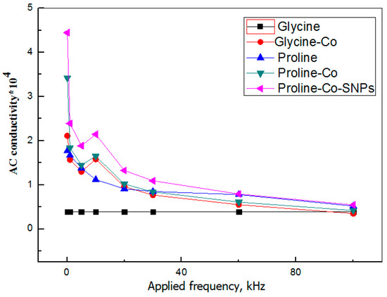 The AC conductivity of the sample is decreased with increasing frequency less than 105 Hz due to charges entrapped between grain boundaries and grains. The AC conductivity of crystals is enhanced by SNPs doping. High electric conductivity of samples enabled the applications as new thermoelectric materials for decreasing heat wastes for the 4th generation of solar cells, new high-temperature superconductors and mini-magnets [44].