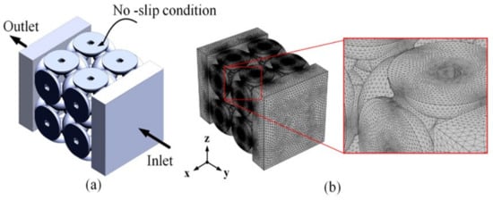 The steps used to characterize the fluid dynamics of the scaffold: (a) The simulation’s boundary condition; (b) a suitable convergent meshing model can be obtained.