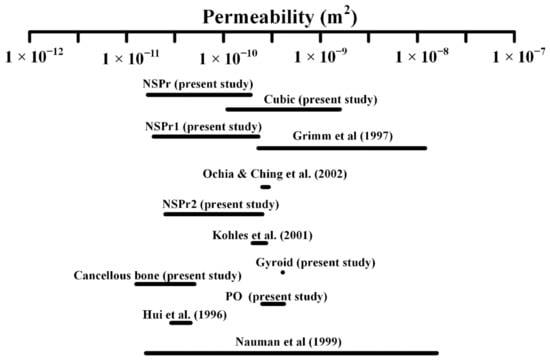Permeability values of cancellous bone were discovered in the literature and evaluated in this study [24,35,36,37,38].