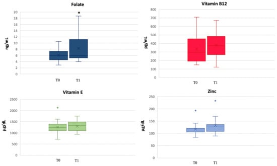 Figure 2). In particular, there was a statistically significant increase in folate levels from T0 to T1 (
