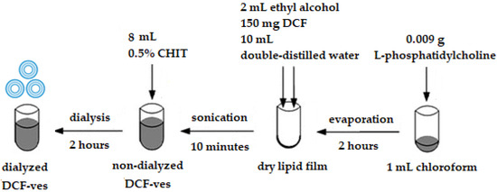 The procedure for obtaining chitosan-stabilized lipid vesicles with DCF.