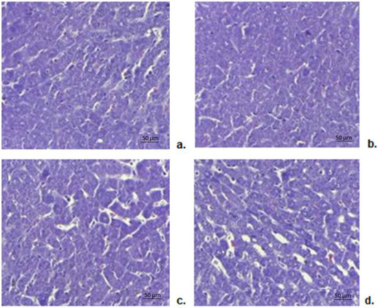 At the end of the experiment, the animals were sacrificed under general anesthesia with isoflurane 5%, and fragments of liver, kidney and stomach were collected, from which preparations were made for the histopathological examination. The harvested tissues were immersed in 10% formaldehyde solution, embedded in paraffin and sectioned at a distance of 5 μm, and Masson trichrome stains were prepared. The prepared blades were further viewed using a Nikon TI Elipse optical microscope, and the images were recorded with a Nikon Coolpix 950 digital camera with a resolution of 1600 × 1200 (1.92 Mpx), optical zoom × 3.